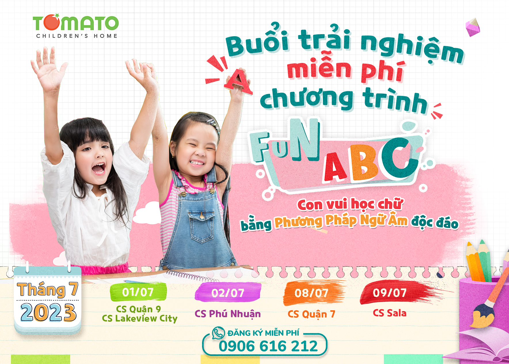 Mời ba mẹ đăng ký tham gia buổi trải nghiệm chương trình FUN ABC tại các cơ sở TOMATO: