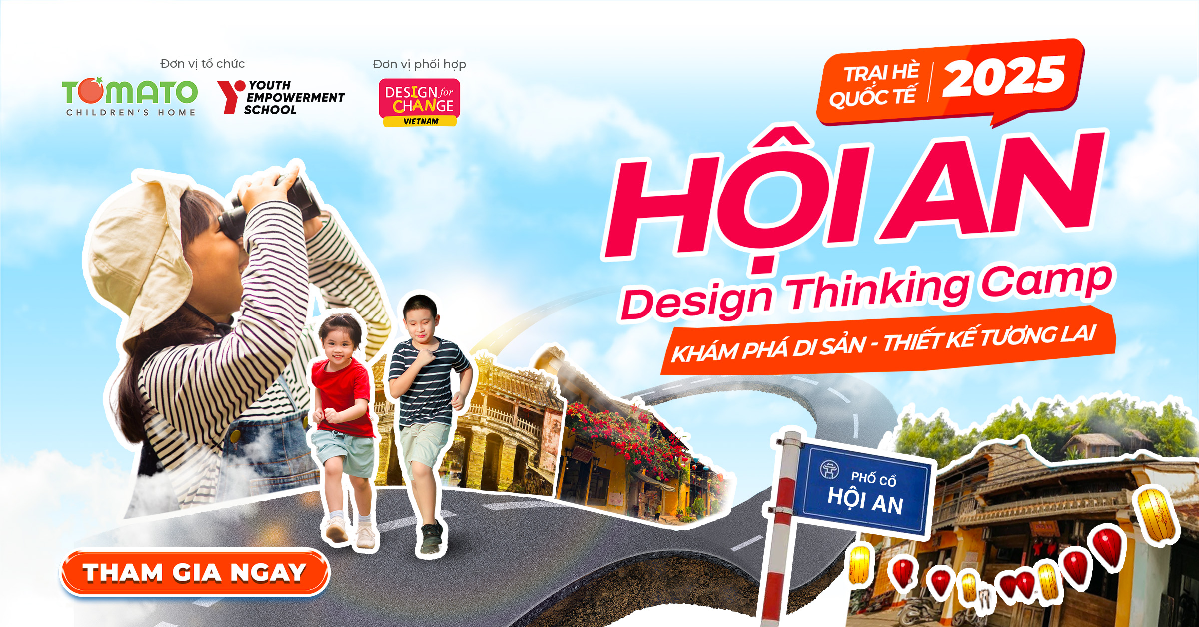 Hội An Design Thinking Camp được tổ chức bởi Hệ thống Trường Ngoại khóa TOMATO và Học viên Thanh Thiếu Niên YES. Trại hè cũng được bảo trợ bởi phong trào trẻ em và học sinh lớn nhất thế giới Design for Change (DFC). Đây là những đơn vị có bề dày hàng đầu Việt Nam và thế giới trong việc tổ chức trại hè và hoạt động ngoại khóa cho trẻ em.